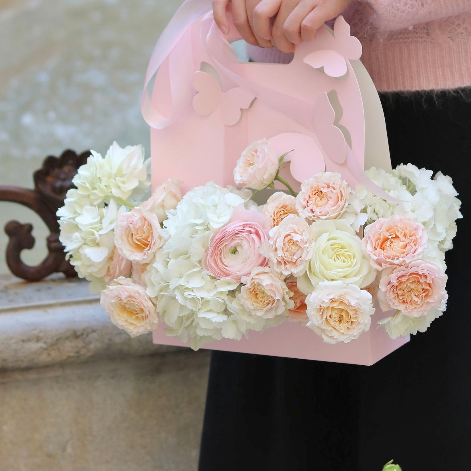 💐Composée à partir d’hortensias blancs importés de qualité supérieure, sélectionnés comme base lumineuse et raffinée, cette box florale est sublimée par un mélange harmonieux de fleurs de saison : renoncules délicates, roses choisies avec soin, scabieuses…